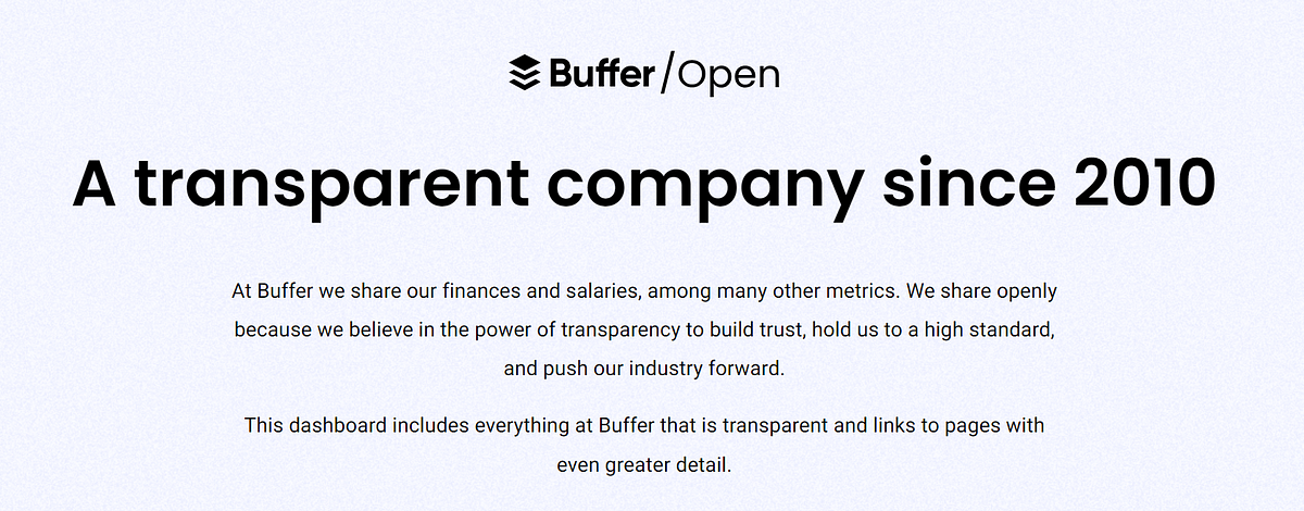 Buffer, a social media management tool, took transparency to a whole new level by making everything from their pricing to their diversity data public.