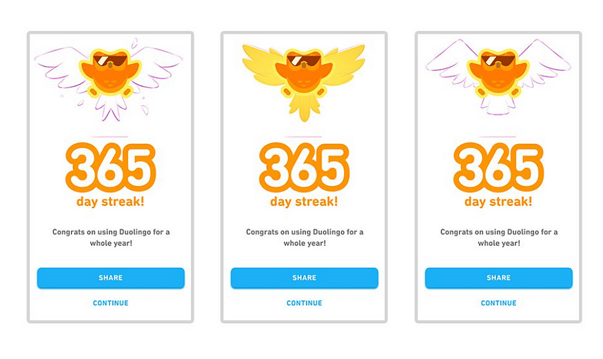 Duolingo motivates users by celebrating their milestones through exclusive congratulatory streaks.