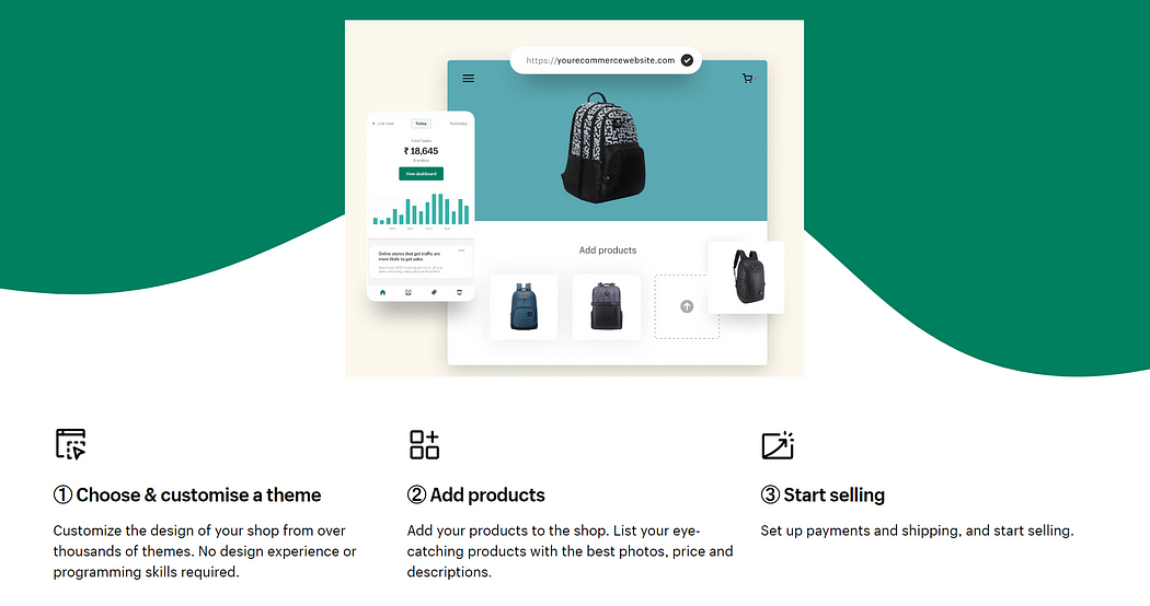 Shopify’s use of simple, conversational language makes users feel at home on its web page.