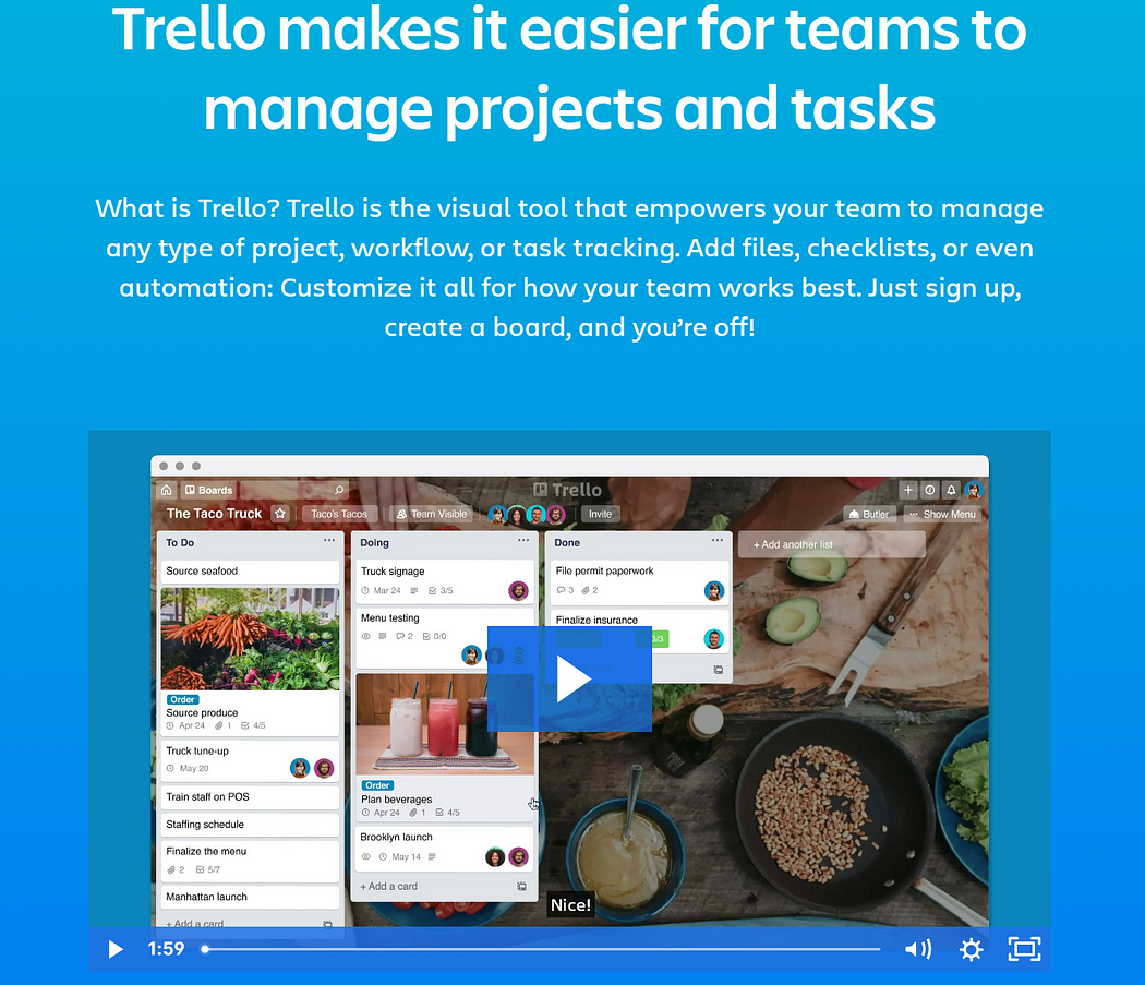 Trello’s use of animations skillfully guides users through creating boards, adding lists, and filling in cards.