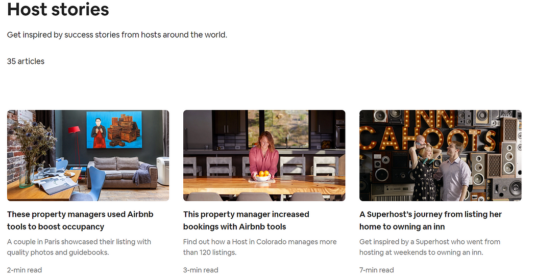 Airbnb showcases stories from hosts and travelers, making it clear that real people love their service. It’s social proof that what they offer works.