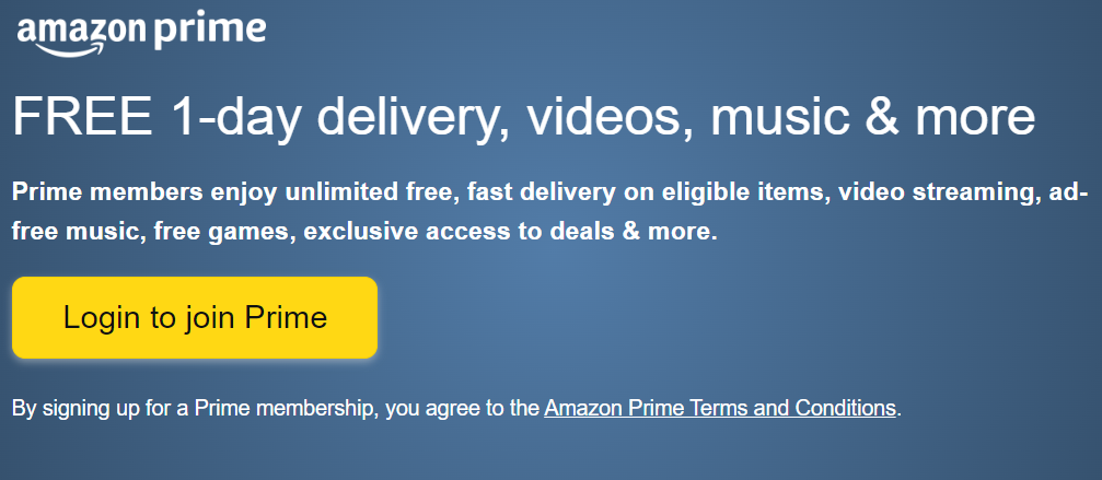 Amazon Prime’s landing page demonstrates this with a simple call-to-action: “Try Prime.”