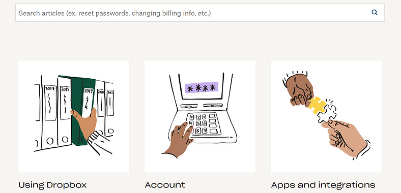 Proactive support means figuring out what users might need help with before they even have to ask. Dropbox is a standout in doing just this with their Help Center. They’ve built a comprehensive resource that aims to answer questions and solve problems before they become bigger headaches for users. This forward-thinking way of supporting customers reduces problems and makes using Dropbox smoother and more enjoyable.